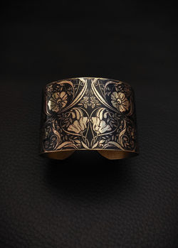 Laiton brut, gravé à l'acide ou fondu au chalumeau puis transformé à la main avec patience, minutie et amourrrr dans mon atelier. Je n'ai pas de boutique en ligne, je travaille artisanalement par collection de centaine de pièces uniques deux fois par an (mars et septembre). Ce catalogue vous permet de télécharger les images.